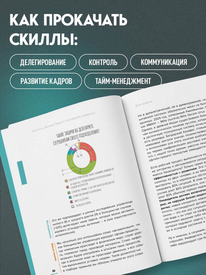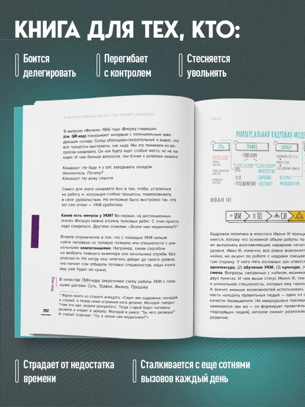 Ответ прост: в тот момент, когда специалист становится руководителем, нужно все делать по-другому. Как именно — подробно разобрано в этой книге. В арсенале каждого управленца есть пять ключевых инструментов: делегирование, контроль, кадры, коммуникация и время. Каждый из них рассматривается через призму личного опыта, реальных историй и масштабного исследования, охватившего 90 тысяч специалистов. Авторы называют настоящего умелого управленца умоводителем. Чтобы им стать, необходимо пройти путь из четырех стадий, каждая из которых подчиняется своим законам и закономерностям. Через опыт, ошибки и самоиронию Илья и Вероника делятся секретами удивительной и сложной профессии управленца.