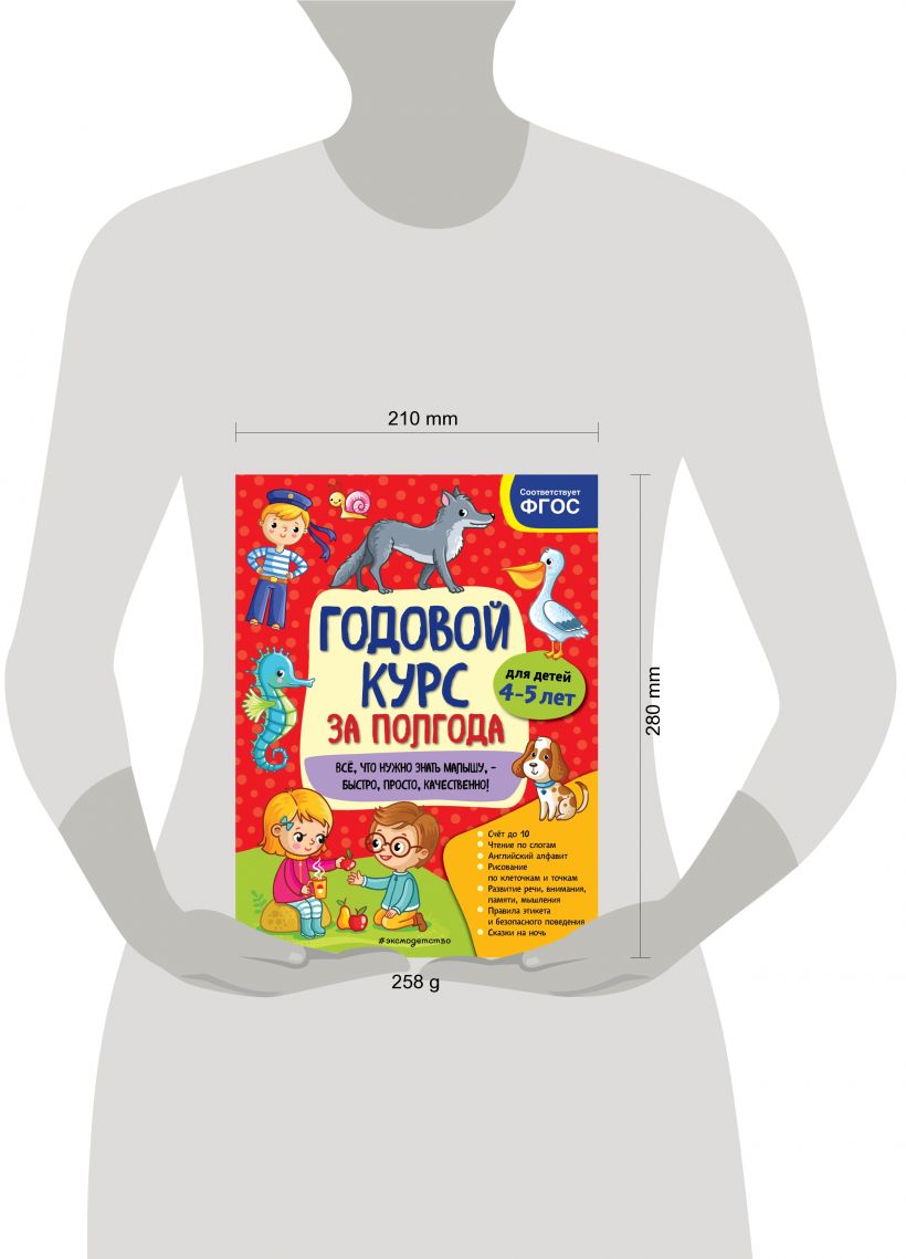 Основная цель пособия — комплексное развитие ребёнка 4-5 лет. Тематика включённых в книгу разделов соответствует ФГОС. Вместе с книгой малыш научится считать и читать по слогам, быстро запомнит английский алфавит, расширит словарный запас, познакомится правилами этикета и безопасного поведения, а также разовьет память, внимание, речь, мышление, воображение, графические навыки. А сказки на ночь помогут родителям уложить малыша в постель. Кроме того, в книге имеются рекомендации опытных педагогов и психологов, которые подскажут, как объяснять малышу новый материал, на что обратить внимание и как организовать занятия.