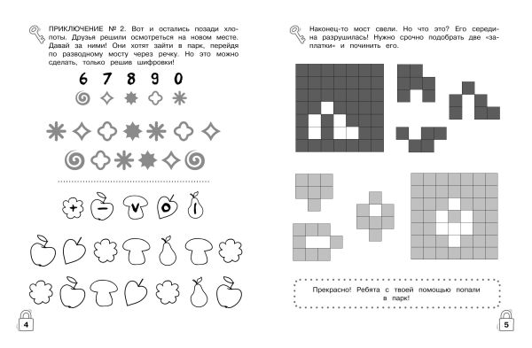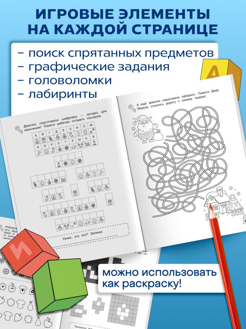 Цель книги – развитие интеллекта и умственных способностей и обучение дошкольника через игру. Тренажер составлен практикующим нейропсихологом и педагогом. На каждой странице ребёнку предстоит решать лабиринты, ребусы, шифровки, выполнять различные графические задания, искать спрятанные предметы. Упражнения помогут развить логическое мышление, внимание, зрительно‑пространственные навыки и воображение, усидчивость, а также улучшить мелкую моторику. Задания распределены по степени сложности: от простых к более сложным.