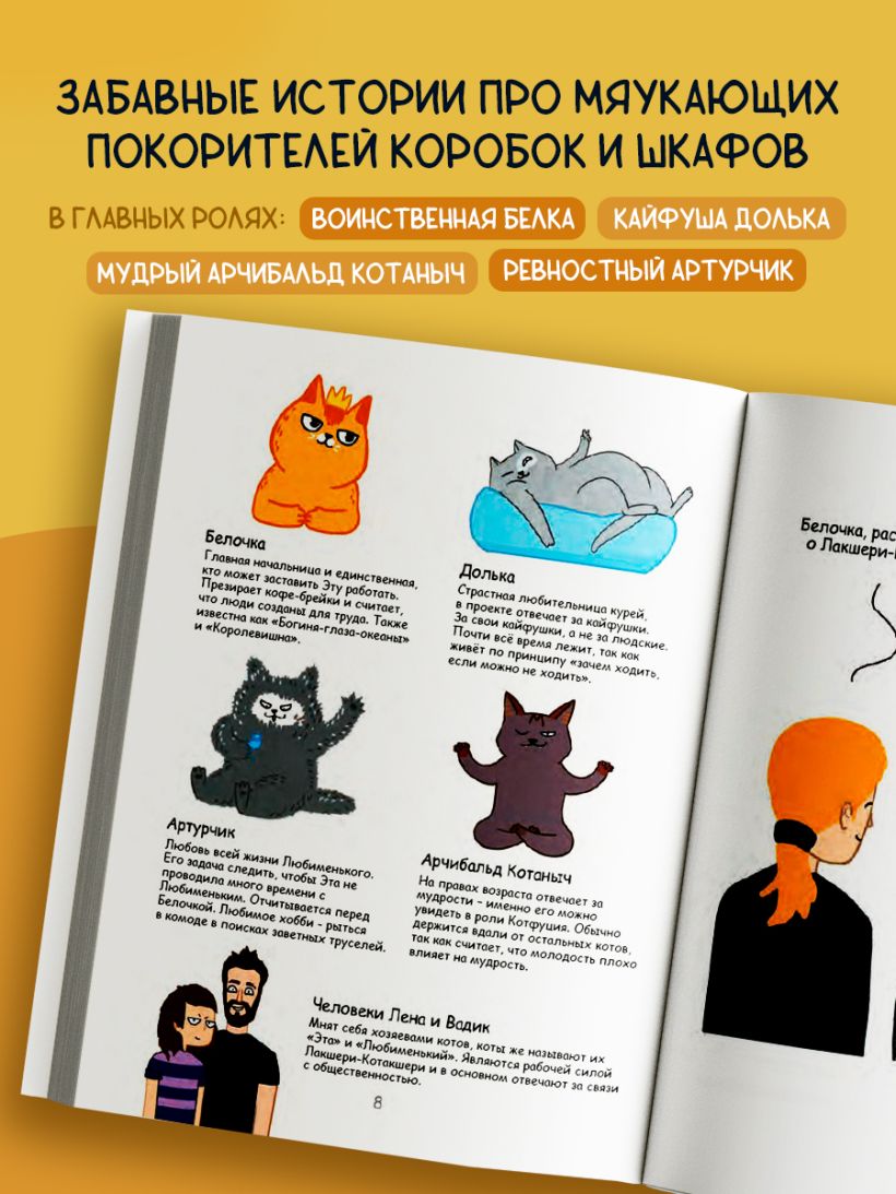 Если по утрам вы просыпаетесь с котом на голове, ваш самый нарядный костюм и макияж из кошачьей шерсти, а без кота и жизнь не та — эта книга точно для вас! Добро пожаловать в котовселенную известного иллюстратора-комиксиста Лены Соломоновой! В забавных комиксах с сюжетами из жизни воинственной Белки, мудрого Арчибальда Котаныча, ревностного Артурчика и кайфуши Дольки вы непременно узнаете себя и своего заМУРчательного питомца. Есть у вас котэ или его еще пока нет — совершенно неважно, благодаря этой книге вы точно прочувствуете, каково это, когда в доме есть кошки и кто в доме настоящий хозяин.