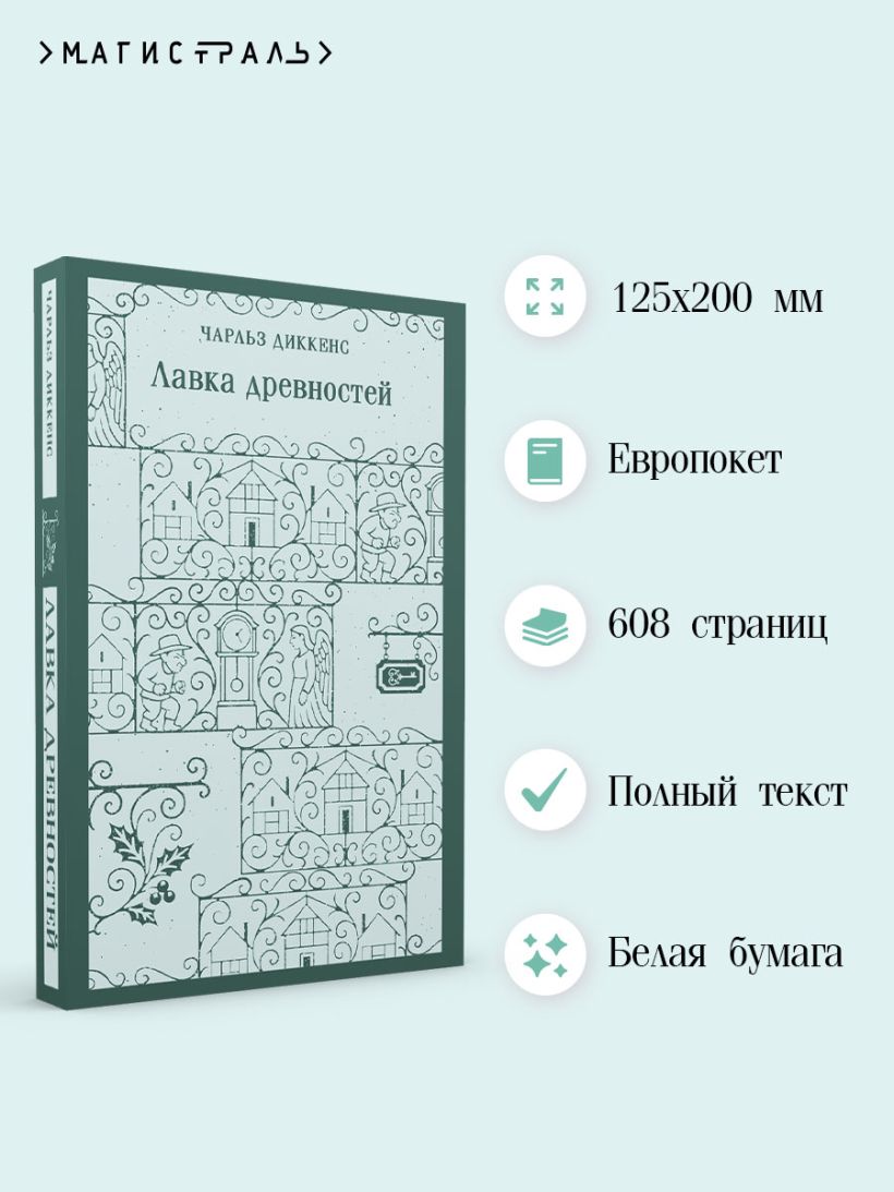 «Лавка древностей» — это переплетение реалистического повествования и сказки с элементами готики, причудливыми, странными и гротескными персонажами, мрачными тайнами. В романе о Нелл, маленькой девочке «бесконечно милого нрава», ее деде, выжившем из ума картежнике-мечтателе, и преследующем их жестоком карлике, ростовщике Квилпе, поднимается вечная тема противостояния добра и зла. Один из самых трогательных романов Чарльза Диккенса.
