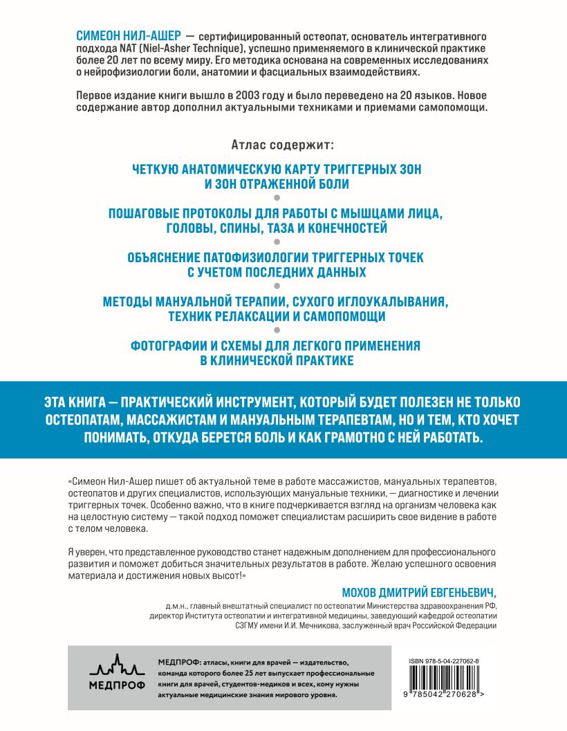 Симеон Нил-Ашер, один из самых известных остеопатов Великобритании, предлагает структурированный подход к диагностике и лечению миофасциальной боли. Его методика доказала эффективность в международной практике. Переизданная более чем на 20 языках, книга поможет находить и устранять триггерные точки у пациентов с самыми разными симптомами. А также четкие домашние протоколы самопомощи с пошаговыми алгоритмами для снятия боли в различных областях тела — от лица и шеи до голеней и стоп.