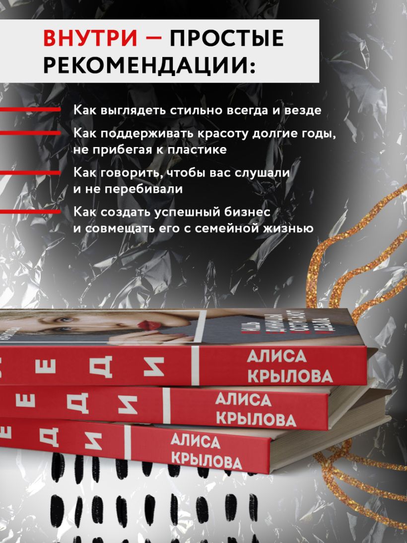 Быть настоящей леди – это не про английские салоны девятнадцатого века. Это про сегодняшний день. Про умение вписаться в любую компанию. Про умение привлекать и очаровывать. Про сохранение чувства собственного достоинства даже в самой сложной ситуации. Алиса Крылова, победительница Миссис Россия 2010 и мирового конкурса красоты Mrs Globe 2011, главный редактор журнала L’officiel Kids и посол Всемирного Благотворительного фонда W.I.N. Foundation, объясняет, как быть леди нового времени. В своей книге она выделяет семь областей, в которых нужно достичь совершенства, и дает простые рекомендации, чтобы: