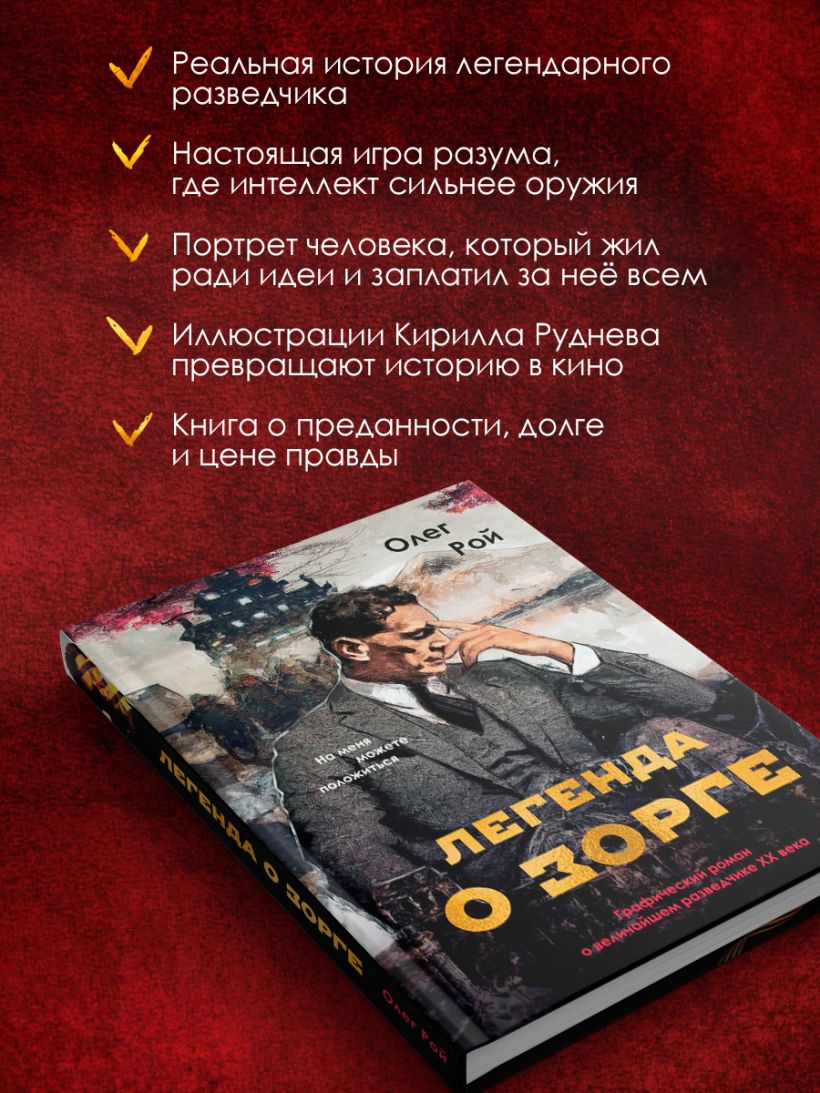 Впервые в мире! «Легенда о Зорге» — это не просто книга, а революционный графический роман, где захватывающая повесть писателя и общественного деятеля Олега Роя оживает в потрясающих иллюстрациях художника Кирилла Руднева. Каждая страница — шедевр: динамичные сцены шпионажа, напряженные диалоги, реалистичные портреты исторических фигур. Руднев, мастер детализации и атмосферы, превращает текст в визуальный триллер — от окопов Первой мировой до баров Токио и секретных встреч с Карлом Либкнехтом и Розой Люксембург.