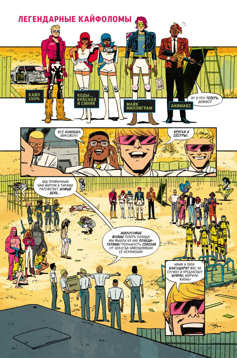Забудьте всё, что знали о Легендарных Кайфоломах! Авторы сценария Джерард Уэй и Шон Саймон, а также художник Леонардо Ромеро («Хоукай»), колористка Джорди Беллер (Redlands) и леттерер Нэйт Пикос («Академия “Амбрелла”») объединили силы, чтобы явить миру книгу, которую вы держите в руках! Это совершенно новая история о Кайфоломах, возвращение к истокам, которые когда-то вдохновили группу My Chemical Romance и, в частности, Джерарда Уэя на создание альбома Danger Days и постапокалиптической серии комиксов. Легендарные Кайфоломы. В прошлом они – группа подростков-уничтожителей с твёрдым намерением спасти вселенную, а ныне – заблудшие души без цели и памяти. Бывший лидер банды Майк Миллиграм, пребывающий в ментальном заточении, освобождается от кодирования и отправляется в дорогу с целью вновь собрать Кайфоломов и вступить в решающую схватку с источником зла – подчинившей мир фармацевтической корпорацией. Тем временем загадочный наёмник уже начал охоту за их головами, а ярые банды соперников обнажили пушки, чтобы помешать вновь обретшим друг друга героям на их пути к справедливости.