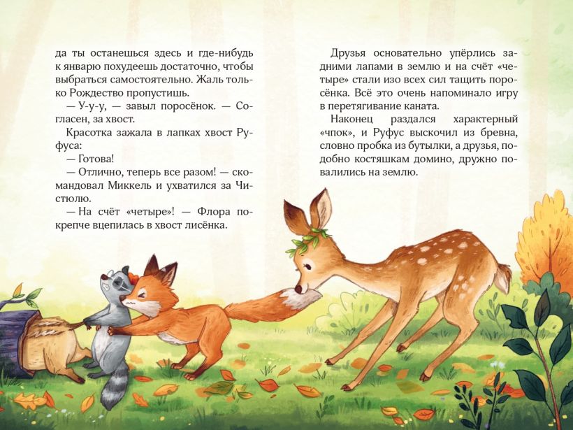 Перед вами Четвёрка отважных: поросёнок Руфус, лисёнок Миккель, енот Чистюля и косуля Флора. Зверята всегда готовы прийти на помощь, найти потерянное настроение и подсказать выход даже из самой трудной ситуации!
