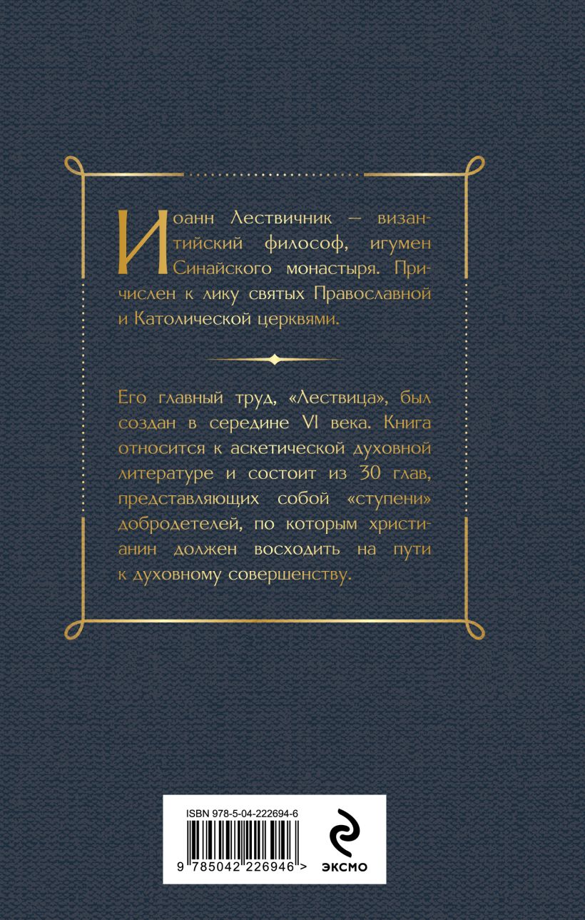 Его главный труд, «Лествица», был создан в середине VI века по просьбе Иоанна, игумена Раифского монастыря. Книга относится к аскетической духовной литературе и состоит из 30 глав, представляющих собой «ступени» добродетелей, по которым христианин должен восходить на пути к духовному совершенству. Число ступеней символично: тридцать лет — возраст, в котором Иисус Христос начал свое общественное служение. Образ отсылает к библейскому видению Иакова, которому явилась лестница, достигающая неба, по которой восходят и нисходят ангелы, а наверху стоит Сам Господь.