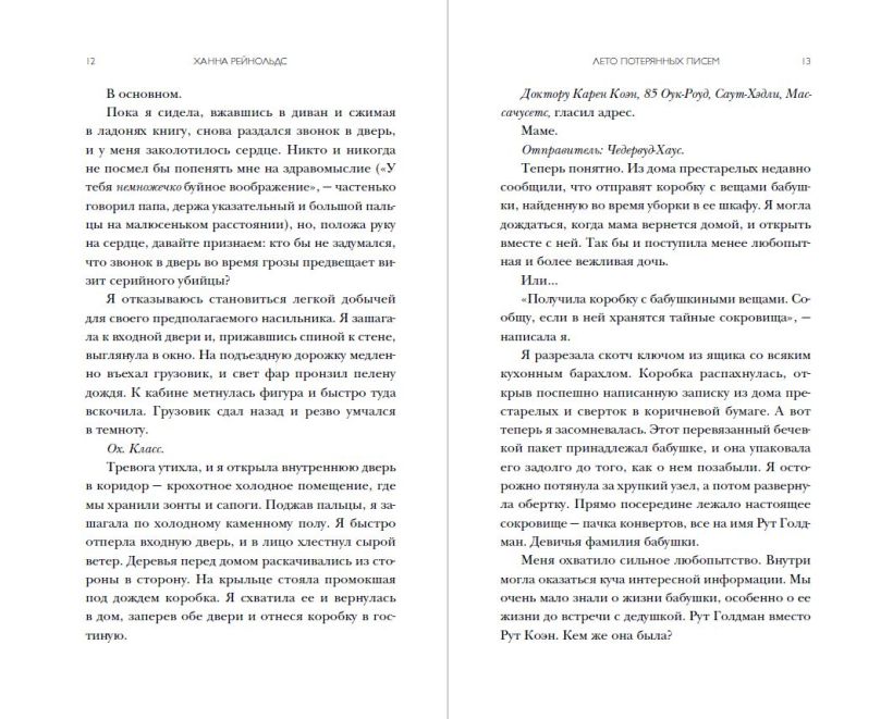 Погрузись в прекрасную историю, которая способна вызвать невероятный трепет в душе. Книга по сюжету напоминает романтический фильм с Амандой Сайфред «Письма к Джульетте». Вместе с героями ты проживешь уникальное лето и, кто знает, может, книга сподвигнет тебя на поиск утерянной информации о своих родных? Так много души спрятано в письмах. И даже спустя десятилетия, раскрывая потрепанные бумажные листочки и читая строки, ты прикасаешься к вечности. В них — тайна, вдохновение, в них — сама жизнь. История, наполненная любовью, семейными секретами, рассказанная мудро и с юмором. Здесь романтика мягко переплетается с историческими элементами — Вторая мировая война, трудности и тяготы того непростого времени.