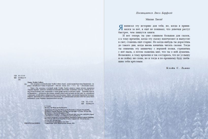Ответы на эти вопросы вы сможете не только прочитать в книге Клайва С. Льюиса «Лев, колдунья и платяной шкаф», но и увидеть, благодаря великолепным иллюстрациям современного британского художника Кристиана Бирмингема. Его работы не раз были отмечены престижными английскими премиями.