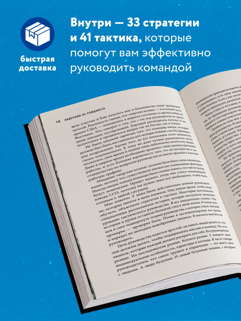 Можно ли развить в себе лидерские качества или же они даются человеку природой? Джоко Виллинк, отставной офицер ВМС США, служивший в «Морских котиках» считает, что руководителем может стать каждый, кто имеет мотивацию и сильную внутреннюю дисциплину. В своей книге он рассказывает про 12 основных правил настоящего лидера. А также предлагает 33 стратегии и 41 тактику, которые помогут вам эффективно руководить командой, даже если вас никто этому не учил.