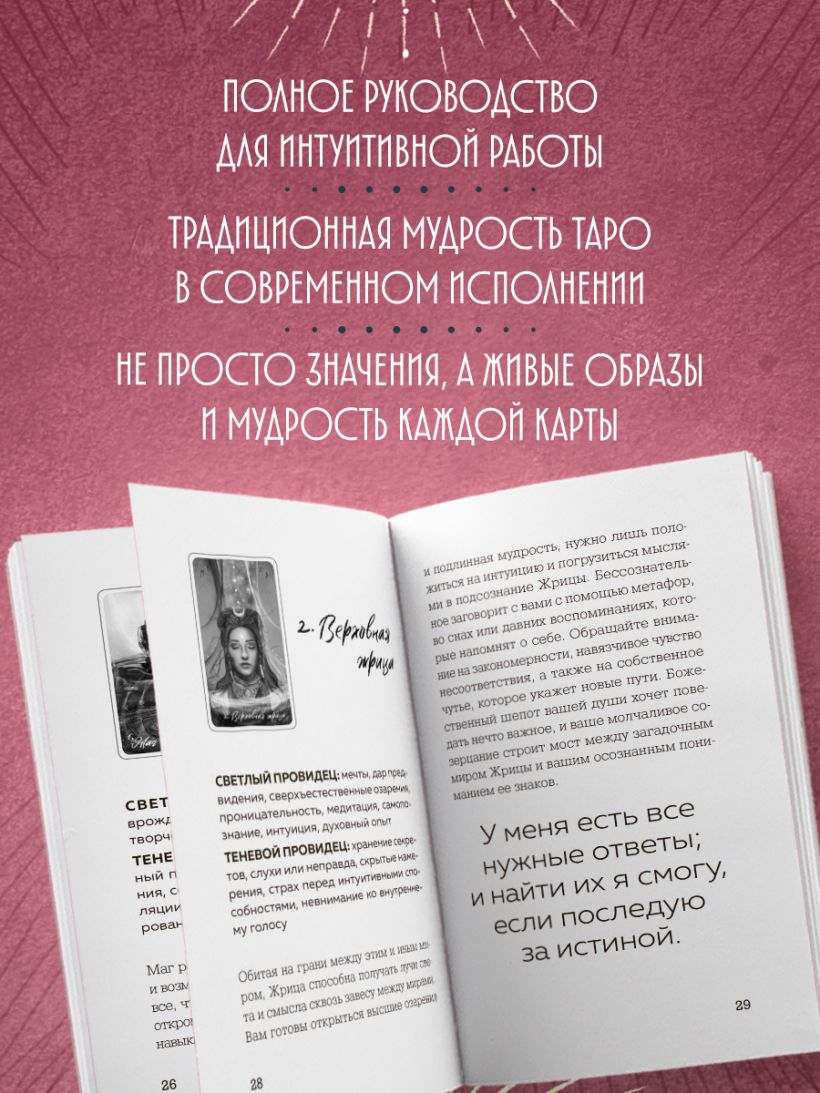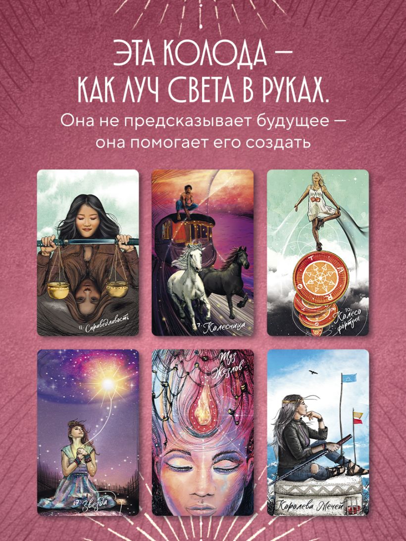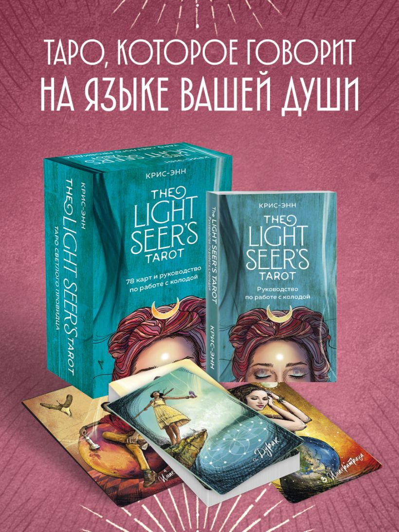 The Light Seer`s Tarot («Таро Светлого провидца») — супербестселлер среди современных колод Таро, завоевавший сердца тысяч людей по всему миру. Эта яркая позитивная колода художницы и дизайнера Крис-Энн сочетает в себе традиционные архетипы и символизм Таро с современным интуитивным подходом к работе с картами и рассказывает о светлых и темных сторонах нашей натуры и жизненных уроках, которые нам предстоят.