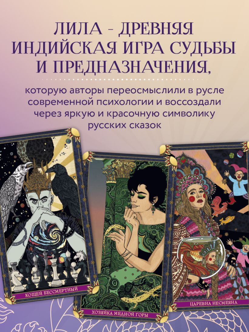 «Лила царица Драконов» — уникальная трансформационная игра, которая создана на основе архетипов русских сказок и не только известными психологами и коучами Натальей Балаян и Еленой Киселевой и художником Екатериной Белявской. Лила позволяет проникнуть в глубины подсознания, узнать самого себя, окунуться в энергию древней игры о предназначении и судьбе человека.