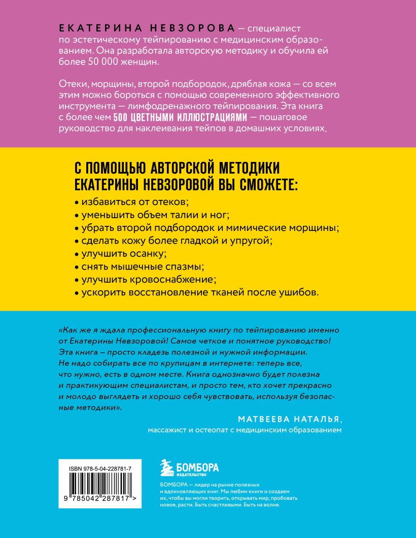 Внутри книги вы найдете подробные инструкции по использованию тейпов и более 500 наглядных иллюстраций, благодаря которым сможете достичь видимого результата в домашних условиях.