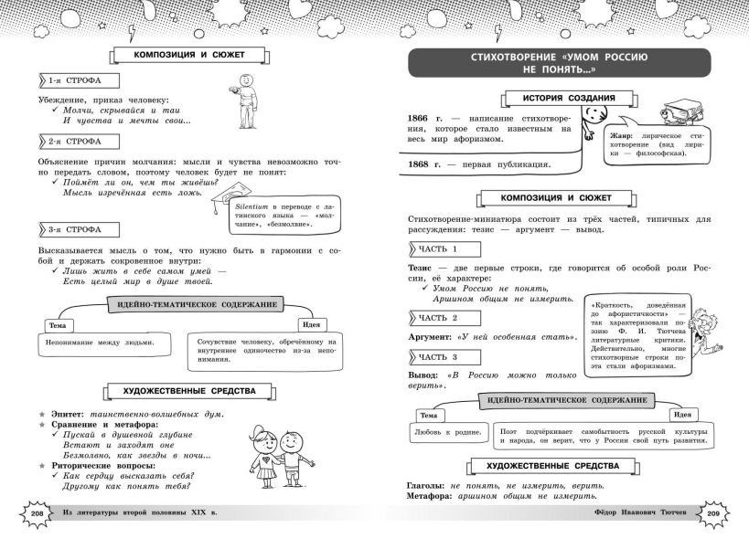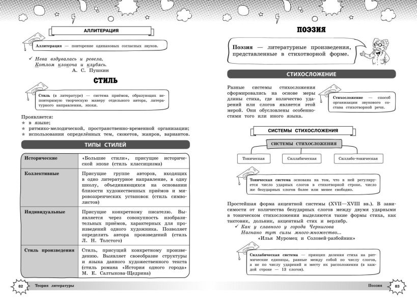 Если вы путаетесь в правилах, понятиях и не можете уложить в голове весь объёмный материал за школьный курс, то это пособие идеально вам подойдёт. В книге нет длинных и скучных текстов — весь материал разбит по коротким рубрикам, таблицам и схемам, которые дополняют иллюстрации. Важная информация подаётся через вопросно-ответную форму с элементами комиксов. Такая форма изложения теории сделает обучение не только эффективным, но и интересным.