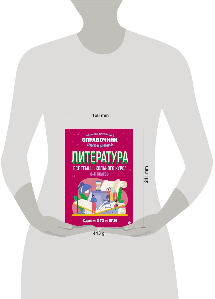 Школьный курс литературы за 5—11 классы собран в одной книге в удобной для запоминания форме. Информация представлена в наглядных схемах и таблицах, что позволит лучше понять и усвоить её. Кроме того, с помощью пособия можно быстро найти любую тему и систематизировать уже имеющиеся знания. Книга включает два раздела: теоретический и аналитический. В первом разделе даются сведения по теории литературы, сопровождаемые примерами, цитатами и пояснениями. Второй раздел содержит информацию о писателях и поэтах, а также комплексный анализ художественных произведений по развёрнутому плану. Пособие окажет существенную помощь в подготовке к ЕГЭ и ОГЭ, прочим формам контроля и урокам. Также оно может быть полезно учителям при планировании и проведении занятий.