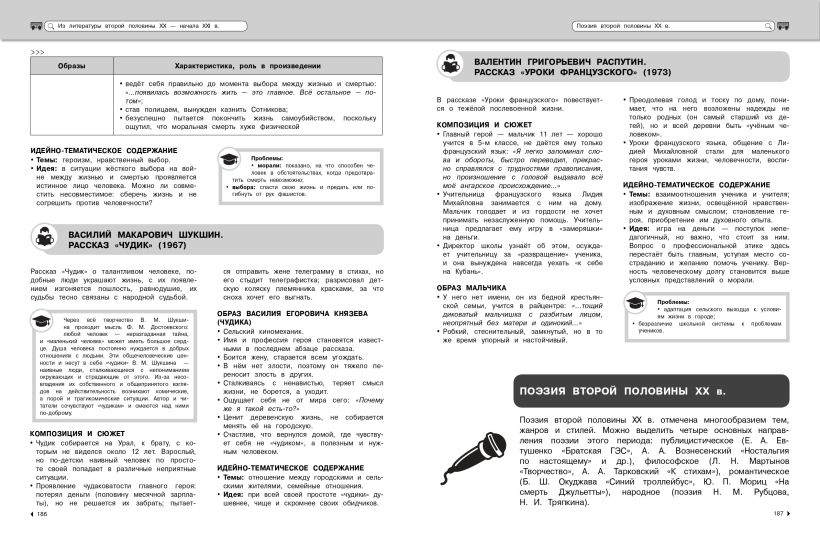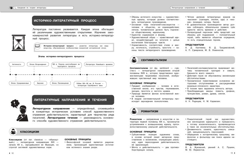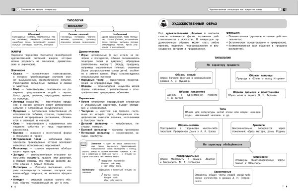 В громоздких учебниках порой бывает сложно найти ответ на какой-то конкретный вопрос. А в данном издании представлена действительно нужная и систематизированная информация, материал изложен последовательно, от простого к сложному, дополняется иллюстрациями, примерами, наглядными схемами и таблицами. В этой книжке для школьников можно найти все основные разделы предмета: «Теория литературы», «Древнерусская литература», «Литература XVIII в.», «Литература XIX в.», «Литература XХ — начала XXI в.».