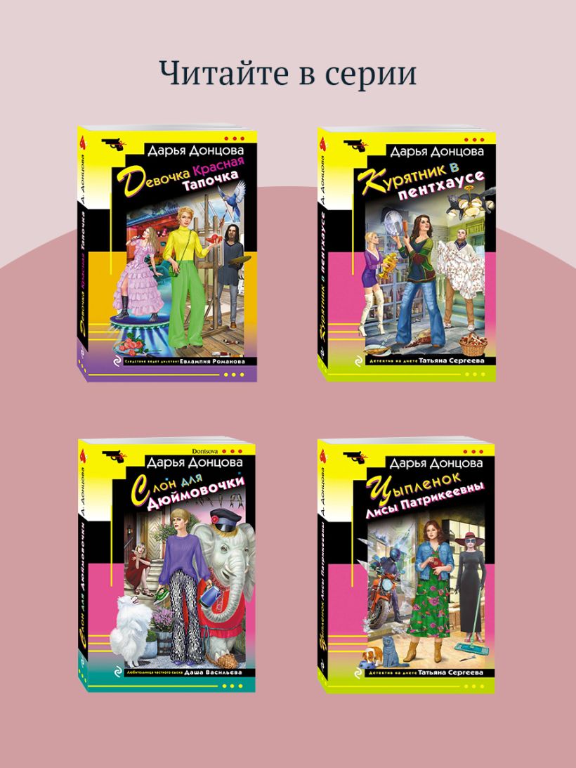 «Алиби для землеройки» Успех — это гора, на вершину которой ты забираешься весь в синяках. И тогда о тебе и вспоминают все, кто когда-то бросил и ушел, обозвав неудачником. В агентство Степана и Виолы обратился успешный бизнесмен и талантливый стилист Марк Иванов. Он хочет найти свою настоящую маму. Еще в детстве Марк был брошен родителями и вырос в детском доме, смирившись с мыслью, что никому не нужен. Однако недавно он получил таинственное письмо от матери, умершей в тюрьме. Оказывается, он вовсе не ее биологический ребенок, а был украден и подменен в роддоме. Чтобы раскрыть загадку происхождения Марка, Таракановой пришлось изрядно покопаться в клубке давних интриг: махинации врачей, сговор медсестер, жаждущие власти богачи и отчаянные попытки молодой женщины спасти свою семью. Наконец результат можно предъявить клиенту. Вот только теперь Виола уверена, что история эта Иванову совсем не понравится... «Такси до леса Берендея» Если женщина не хочет похудеть, значит, она умерла! У Лампы Романовой с утра испортилось настроение. Мало того, что она поправилась на пару кило, так еще и на работе круговерть. В агентство Вульфа обратилась Варвара Носова, у немолодой дамы горе. Ее мама, сын, муж, невестка, все внезапно умерли за короткое время! Казалось бы, ничего подозрительного в их смерти нет: родные Носовой заболели, а невестка покончила с собой. Но Варвара уверена: их всех убили. Да и ее саму пытаются отравить... Шаг за шагом Евлампия распутывает семейные тайны Носовой. И вдруг понимает, что как будто бы оказалась внутри кино, сценарию которого позавидовали бы в Голливуде. А актеры этого кино заигрались настолько, что это привело к непоправимым последствиям. «Кладбище чужих секретов» Краткое определение интеллигентного человека таково: он очень хочет дать кому-то в глаз, но сдерживается и радостно улыбается всему миру. Вот и Иван Подушкин всегда радуется клиентам, даже если они приходят без предупреждения. Повод для визита к детективу у врача Деревянкина Рудольфа оказался просто ужасным. Его мать, эксцентричная Элли, умерла при весьма странных обстоятельствах. Вскрытие обнаружило отравление адским коктейлем из разных препаратов. Рудольф просит Ивана найти убийцу. В поисках правды сыщик сталкивается с загадочным «Великим Жрецом». Его ритуалы в заброшенном селе Бакино связывают жизни матери Рудольфа, ее подруги Николетты и других влиятельных персон. Мистические собрания, кладбище секретов и вода из проклятого болота — ключи к разгадке смерти Элли... Дарья Донцова — самый популярный и востребованный автор в нашей стране, любимица миллионов читателей. В России продано более 200 миллионов экземпляров ее книг. Ее творчество наполняет сердца и души светом, оптимизмом, радостью, уверенностью в завтрашнем дне! «Донцова невероятная работяга! Я не знаю ни одного другого писателя, который столько работал бы. Я отношусь к ней с уважением, как к образцу писательского трудолюбия. Женщины нуждаются в психологической поддержке и получают ее от Донцовой. Я и сама в свое время прочла несколько романов Донцовой. Ее читают очень разные люди. И очень занятые бизнес-леди, чтобы на время выключить голову, и домохозяйки, у которых есть перерыв 15—20 минут между отвести-забрать детей». — Галина Юзефович, литературный критик