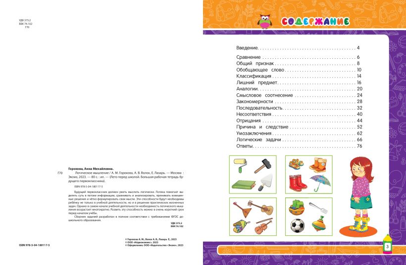 Данный тренажёр для подготовки к школе создан с целью научить дошкольника мыслить. Логическое мышление — это не врождённый талант, а навык, который можно и нужно развивать. Обладая им, ребёнок всегда сумеет выделить в потоке информации всё самое важное, осмыслить это, спрогнозировать последствия и принять взвешенное, логичное решение. Это очень пригодится ему в 1 классе, в условиях постоянного потока новой информации.