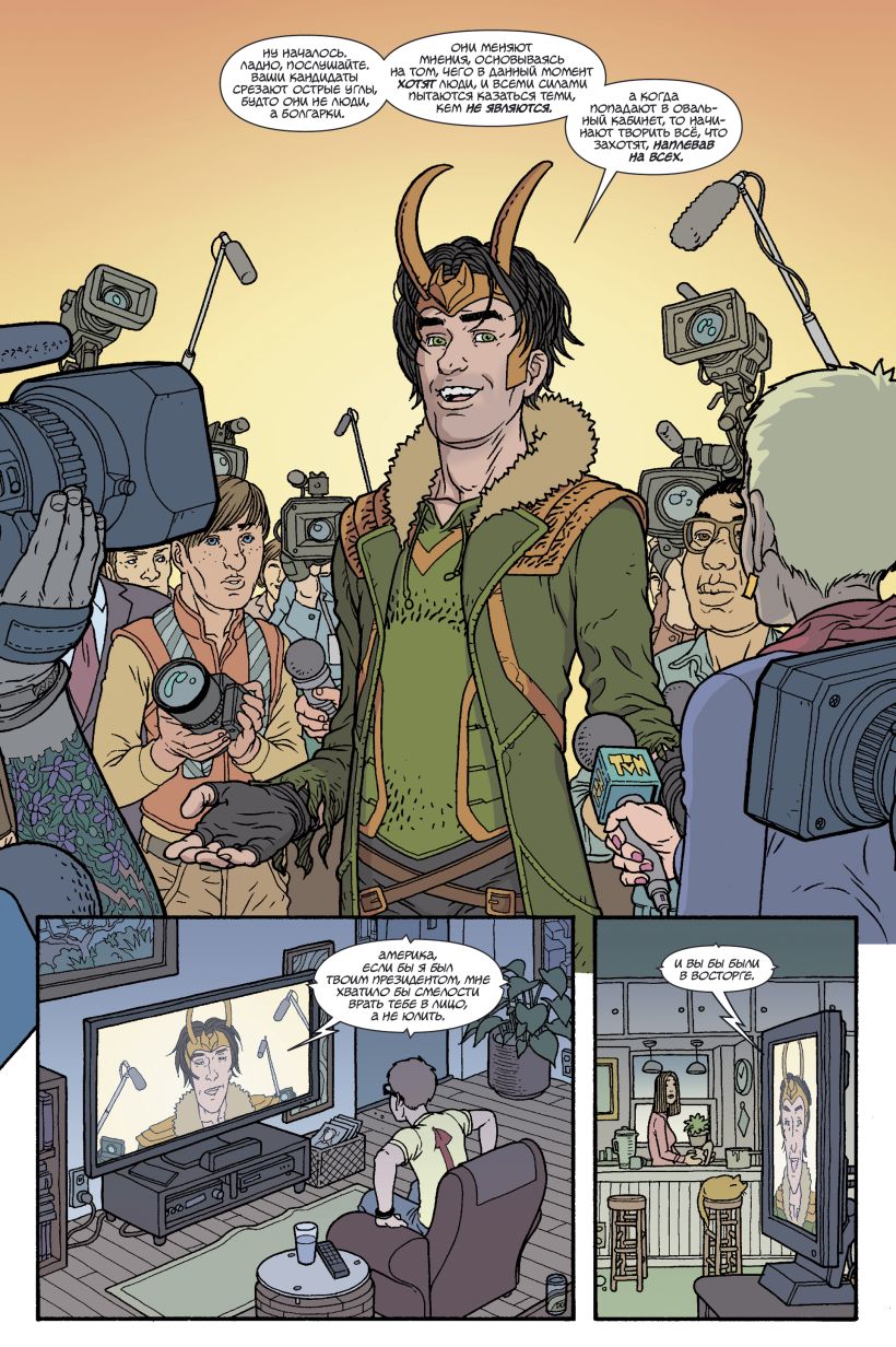 Как бы абсурдно это ни звучало, но всё действительно так: Локи врывается в президентскую гонку! Здесь что не соперник — искусный жонглёр истинами, ведь политика — это, как известно, искусство управлять людьми, обманывая их. В таких делах ложь исходит из каждого слова: идеальная среда для Локи! Как долго он сможет «откровенно» лгать американскому народу, в отличие от политиканов, которые врут, утаивая это? Куда заведёт его эта дорожка? Найдётся ли кто-нибудь, кто сможет порушить богу его планы?