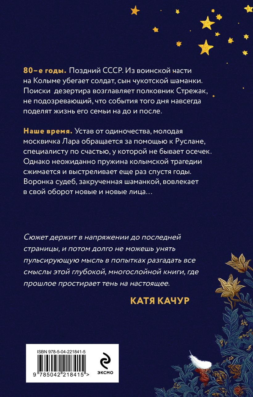 Пружина колымской трагедии сжимается и выстреливает спустя годы. Воронка судеб, закрученная шаманкой, вовлекает в свой оборот новые и новые лица. Настоящее во власти прошлого. Далекое всегда рядом.