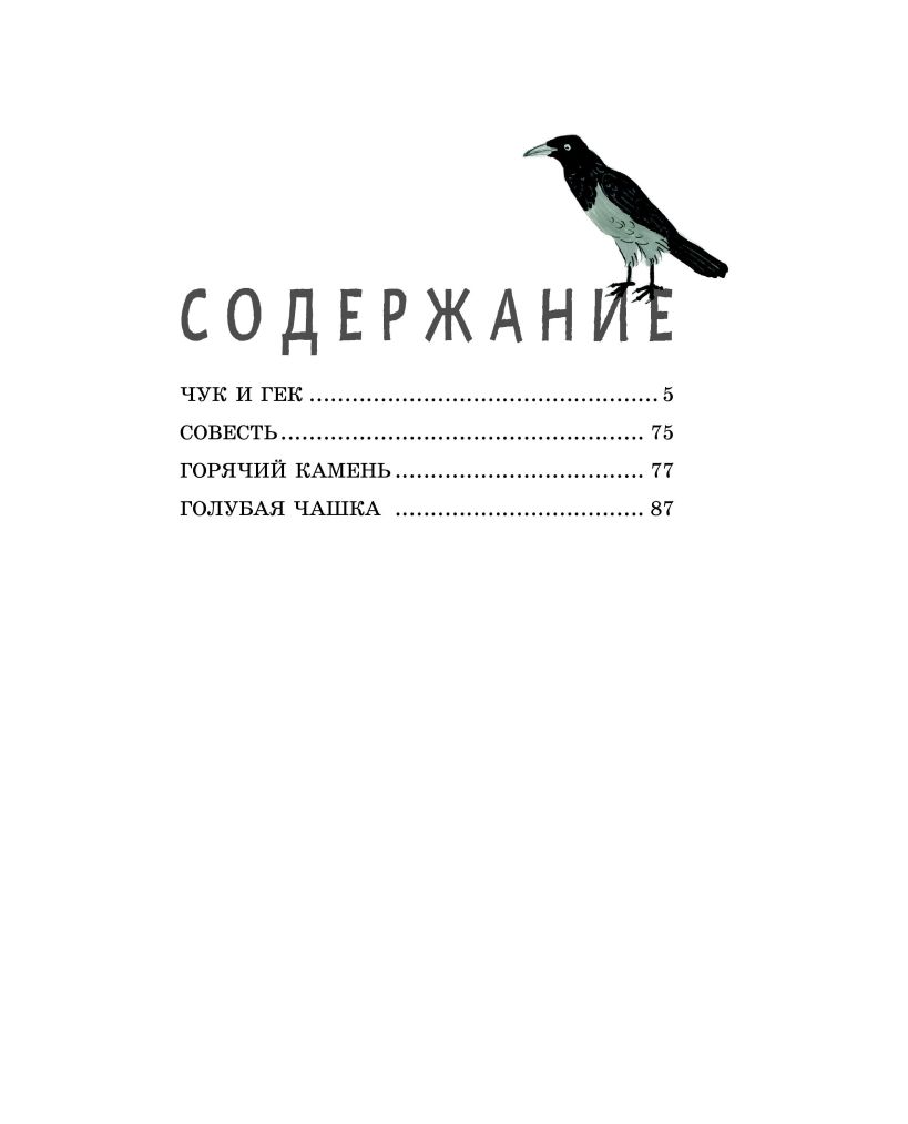 В эту книгу вошло четыре самых популярных рассказа Аркадия Петровича Гайдара: «Чук и Гек», «Совесть», «Горячий камень», «Голубая чашка». Эти произведения проверены временем. У самых первых читателей уже выросли внуки и правнуки, но каждое новое поколение с неизменным интересом отправляется вместе с героями в увлекательное путешествие к далёким Синим горам, тащит в гору волшебный горячий камень и отлично знает, что голубую чашку разбили зловредные серые мыши.