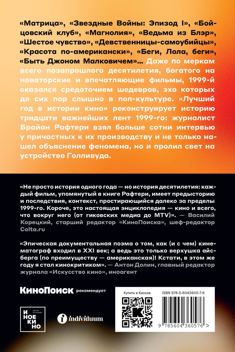 В книге реконструируется история тридцати важнейших лент 1999-го: журналист Брайан Рафтери взял больше сотни интервью у причастных к их производству и не только нашел объяснение феномена, но и пролил свет на устройство Голливуда.