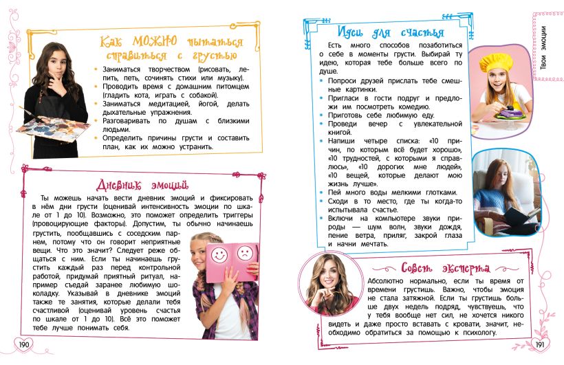 Эта книга — лучший подарок для девочки 11 лет и старше. Книга для подростка, которой вступает во взрослую жизнь и нуждается в правильных советах, помогающих избежать проблем и быть счастливой. Особенно полезна она будет девочкам, которые: