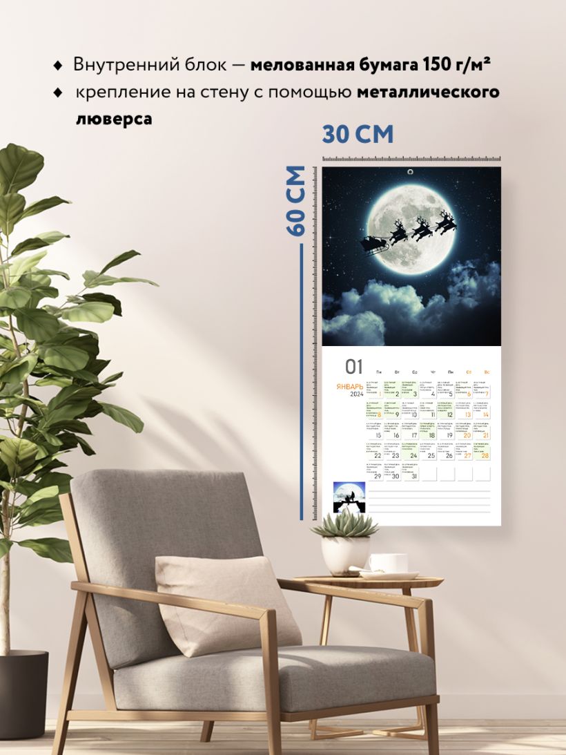 Наши настенные календари отличаются высоким качеством исполнения! Тщательно подобранные иллюстрации, напечатанные на глянцевой плотной бумаге, станут украшением дома. В календарной сетке найдется место для ваших планов: большие клетки позволят делать записи и организовать свой год! В календаре отмечены все государственные праздники.