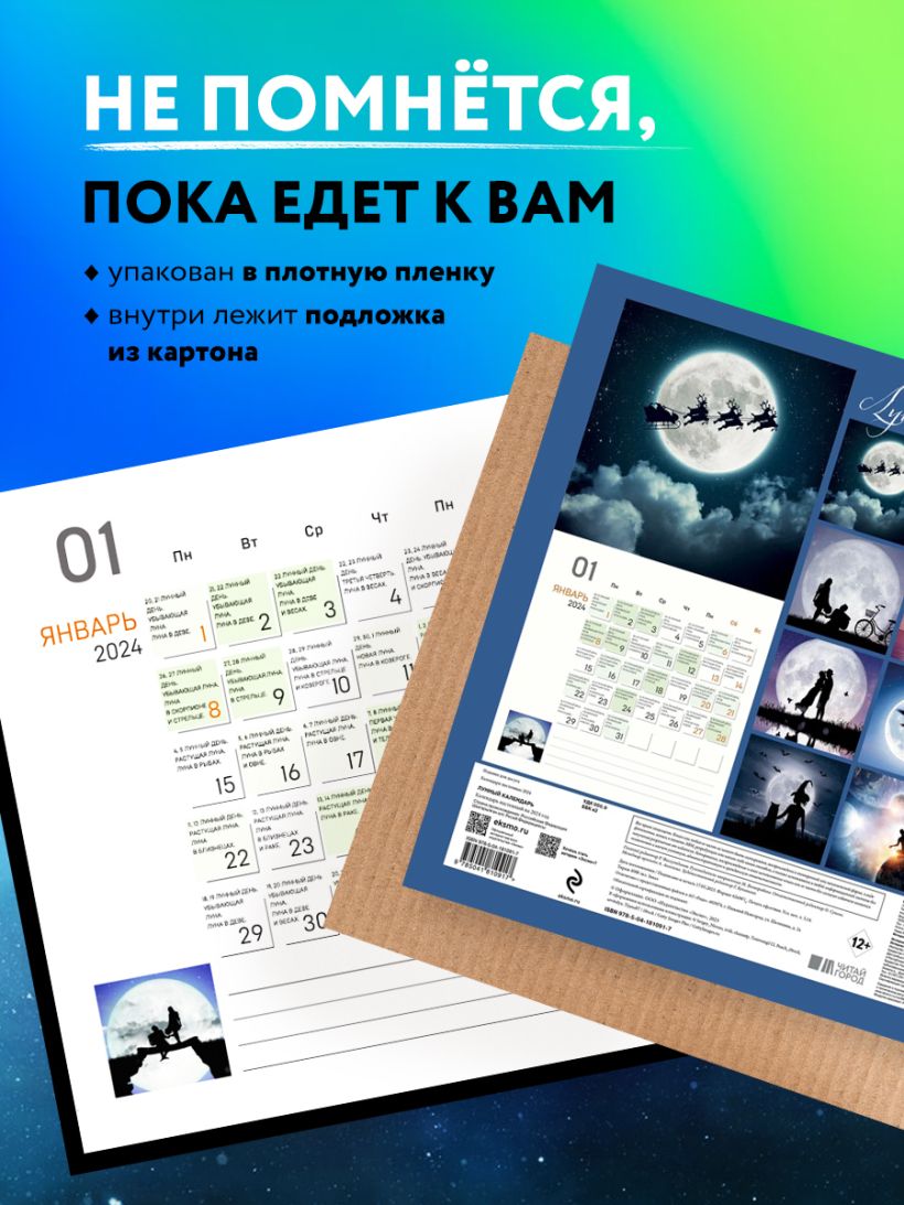 Практичный лунный календарь уже завоевал любовь покупателей в прошлом году. Внутри красивые иллюстрации, информация по лунным циклам, благоприятным и неблагоприятным дням.