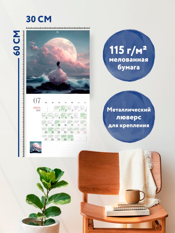Календарь Татьяны Мужицкой с яркими иллюстрациями от Влады Коваль! В сетке — вдохновляющие цитаты автора и необычные праздники вроде «Всемирного дня “Спасибо”» и «Международного дня заботы о себе». Каждый месяц — как напоминание: жить можно с радостью, легкостью и любовью к себе. Совокупный тираж книг Татьяны Мужицкой — 360 000 экземпляров. Наши настенные календари отличаются высоким качеством исполнения! Тщательно подобранные иллюстрации, напечатанные на глянцевой бумаге высочайшего качества, станут настоящим украшением дома, а в календарной сетке найдется место для ваших планов: большие клетки позволят делать записи и организовать свой год! В серии настенных календарей издательства «ЭКСМО» каждый найдет тему по вкусу: великие художники, великолепные подборки с самыми знаменитыми произведениями искусства, легендарные кинематографические саги и игры, главные книжные авторы и бестселлеры, фотографии и иллюстрации любимых животных и многое-многое другое! Технические параметры: - Тип календаря — настенный перекидной. - Год — 2026. - Календарная сетка — с разбивкой по месяцам. - Вид скрепления — скрепка. - Ширина — 30 см. - Высота — 30 см. - Внутренний блок — мелованная бумага 150 г/м2. - Подложка — плотный гофрокартон для поддержания формы. - Индивидуальная упаковка в плотный целлофановый пакет.
