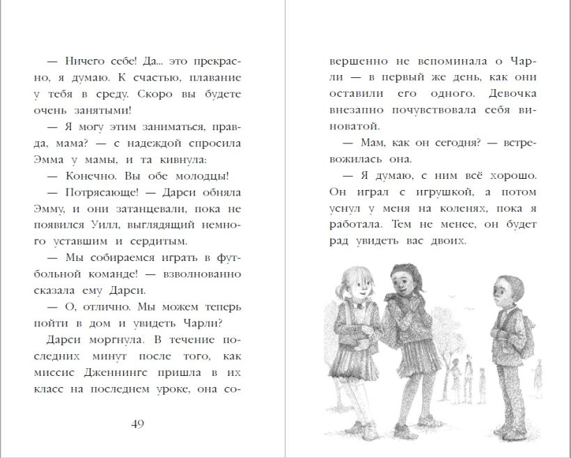 Книга издана на белой бумаге, внутри достаточно крупный шрифт и потрясающей красоты чёрно-белые иллюстрации, которые позволят детям переключать внимание, не нагружая чрезмерно глаза.