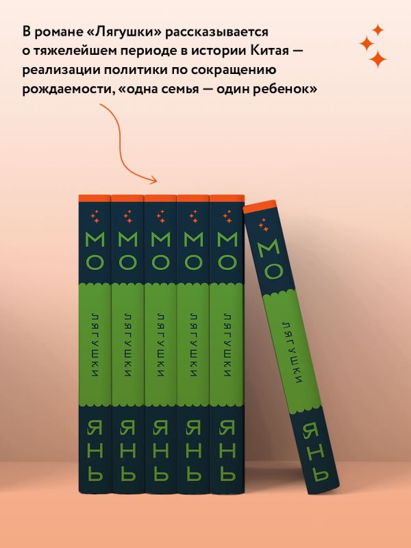 Мо Янь — один из самых ярких и значимых китайских писателей, лауреат Нобелевской премии и премии Мао Дуня, самой престижной китайской литературной награды. Мо Янь как никто другой умеет запечатлеть на страницах своих произведений удивительную историю удивительной нации. В романе «Лягушки» рассказывается о тяжелейшем периоде в истории Китая — реализации политики по сокращению рождаемости, «одна семья — один ребенок». Отдельные человеческие судьбы покажут читателю судьбу целой страны.