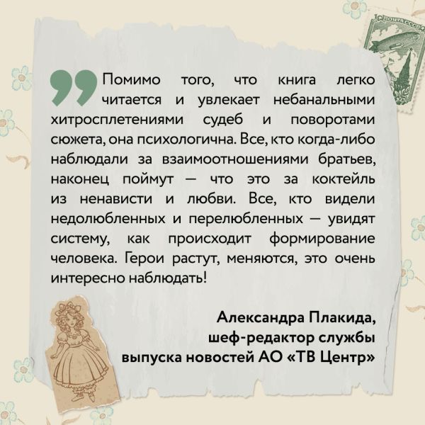 Эта книга самим своим описанием порождает определенные ожидания от сюжета. Кажется, что это будет история о соперничестве и обидах двух братьев, о старшем и младшем, которые всегда должны бороться между собой за любовь окружающих. Но, начиная читать и погружаясь всё дальше в сюжет, ты чувствуешь такую любовь и заботу, которая разбивает сердце и душу на множество осколков. Эта любовь, спрятанная за язвительными фразами, способна растопить даже самое ледяное сердце. И эта же любовь заставляет грустить.