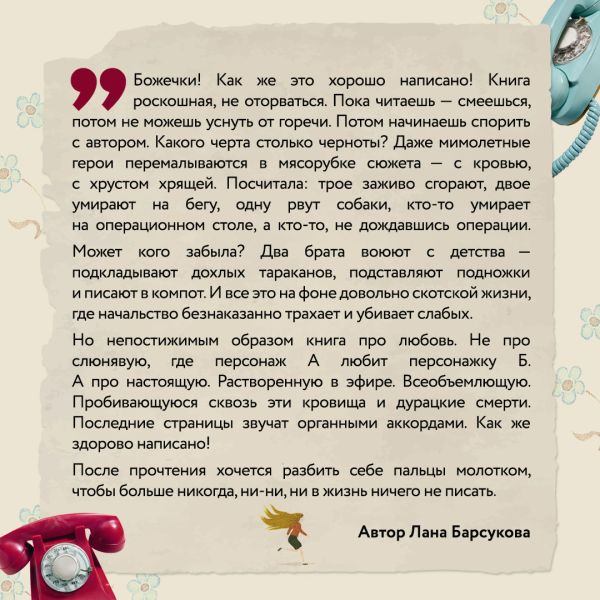 Книга очень интересная и захватывающая. В ней тебе рассказывают что-то очень грустное, но с таким теплом и любовью, что ты даже не сразу ощущаешь всю эту грусть. Она медленно подступает, давая тебе проникнуться, смириться с тем, что будет дальше. Здесь много жестоких, грубых и страшных моментов. Здесь описания печальных событий. Но в конце ты всё понимаешь, что это просто жизнь, настоящая жизнь…