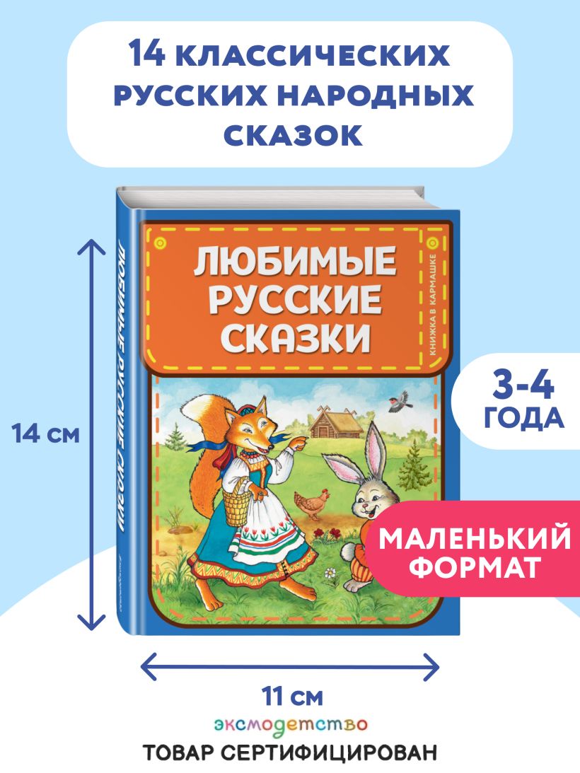 В дороге, на прогулке, в гостях и дома — с КНИЖКОЙ В КАРМАШКЕ ребёнок не заскучает и с пользой проведёт время! В этот красочный сборник с иллюстрациями Ирины Петелиной вошло 14 лучших русских народных сказок для детей: «Петушок и бобовое зёрнышко», «Заюшкина избушка», «Лиса и медведь», «Морозко», «Девочка Снегурочка», «По щучьему велению» и другие. Через увлекательные сказочные сюжеты малыш узнает такие понятия, как добро, справедливость и дружба.