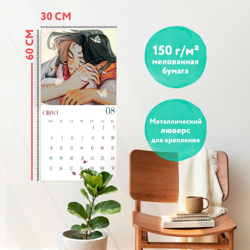 Этот календарь приглашает вас прожить невероятные эмоции и пройти через испытания любви вместе с героями китайских новелл! Внутри иллюстрации от иллюстратора AMONIMY - нежный и воздушный стиль иллюстраций не оставит вас равнодушными! Отличное полиграфическое исполнение и удобная сетка, в которой отмечены все государственные праздники — все это будет дарить вам такие незабываемые эмоции каждый день, что вы не заметите, как пролетит целый год! Отличный подарок себе и друзьям-фанатам!