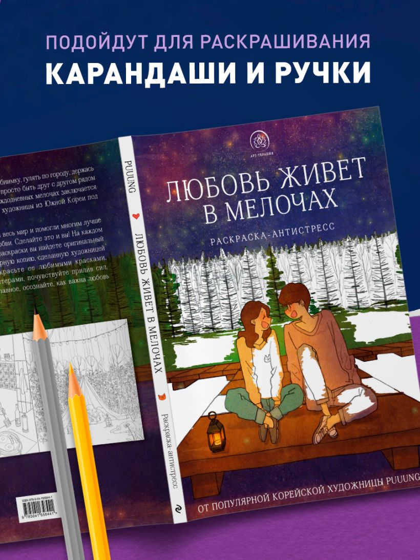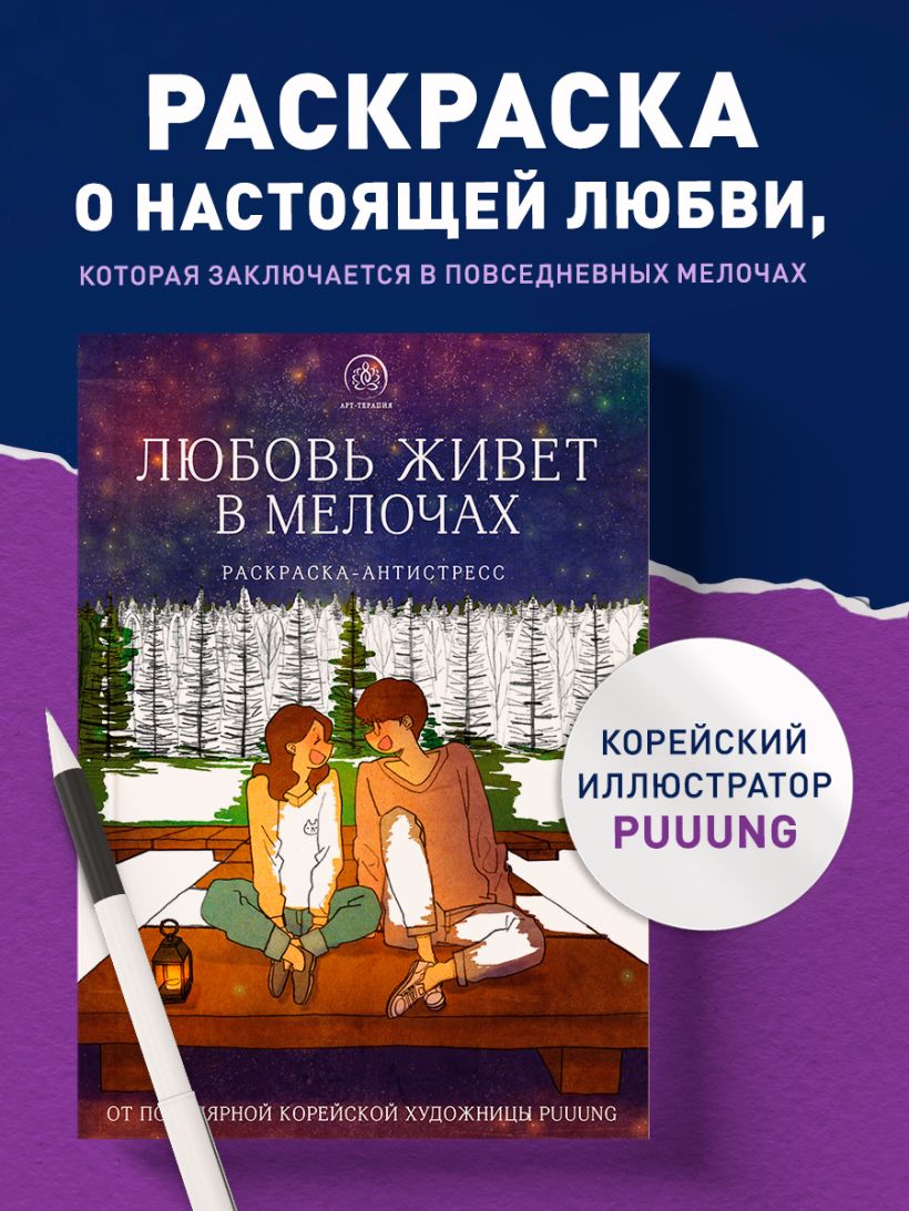 Любовь живет в мелочах. Раскраска-антистресс от популярной корейской художницы Puuung