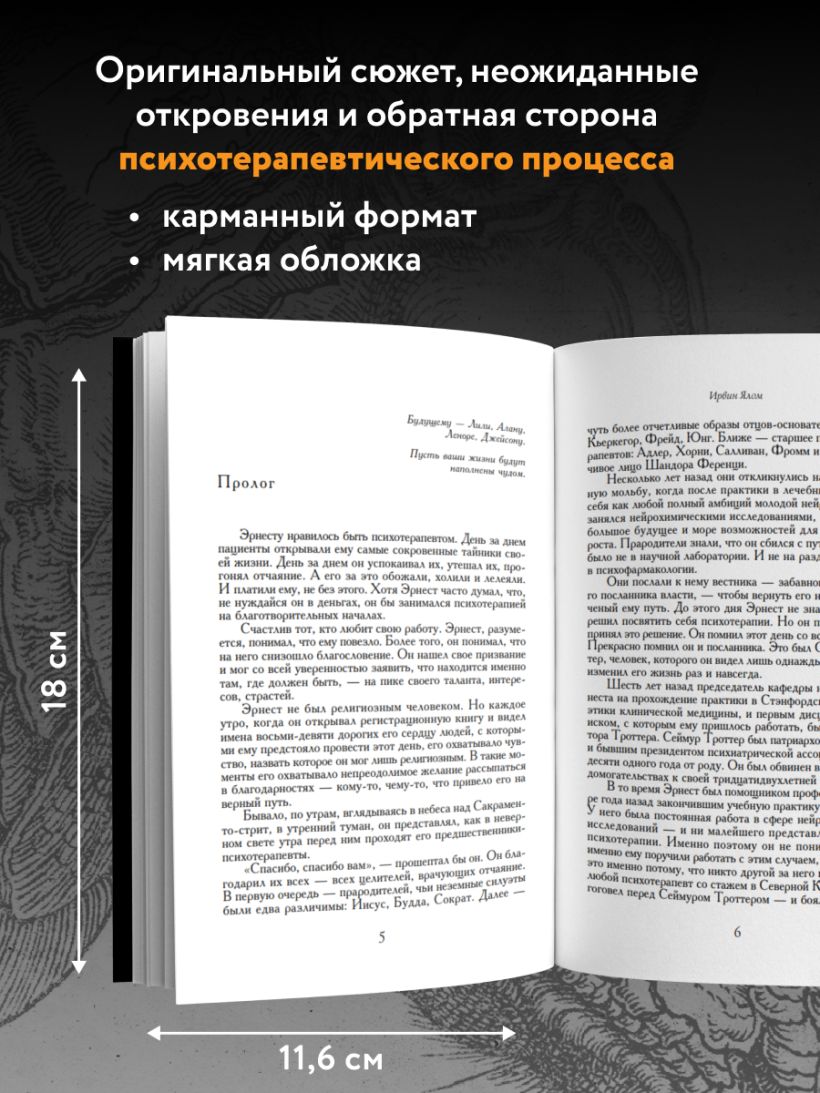 Ялом показывает изнанку терапевтического процесса, позволяет читателю вкусить запретный плод и узнать, о чем же на самом деле думают психотерапевты во время сеансов.