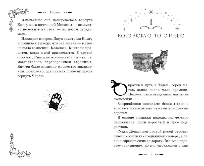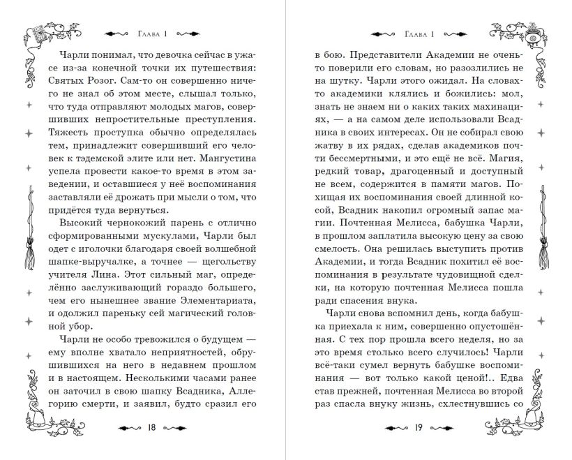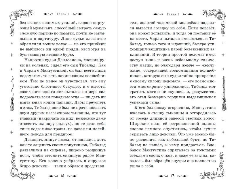 Волшебные чёрно-белые виньетки в блоке передают магическую атмосферу книги.