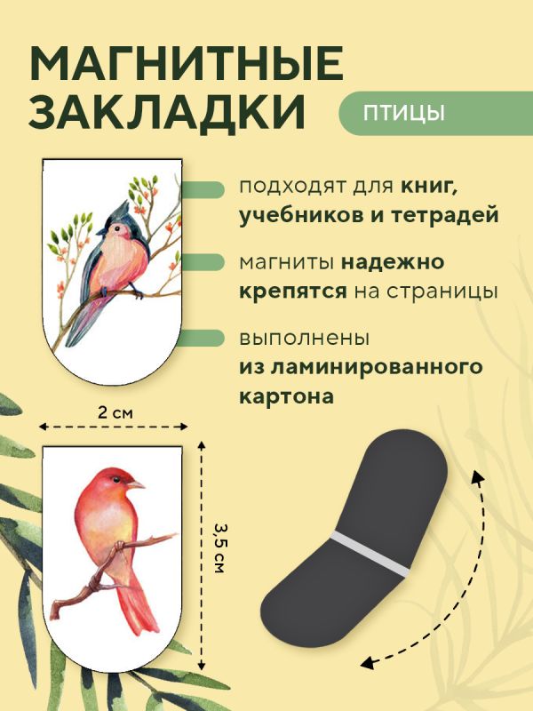 Магнитные закладки. Birds (6 закладок полукругл.) (Арте)