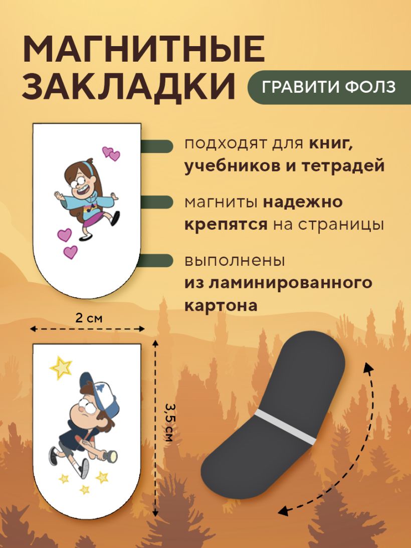Магнитные закладки. Гравити Фолз (6 закладок полукругл.)