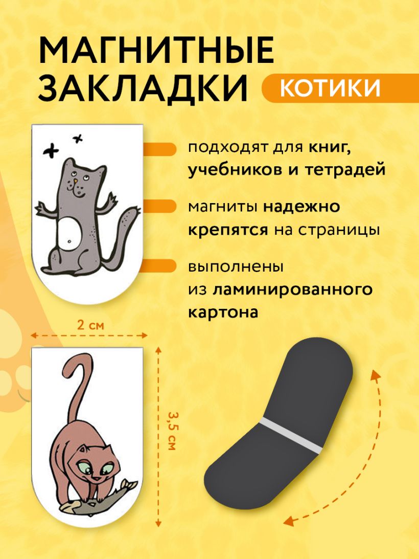 Магнитные закладки. Котики (6 закладок полукругл.)