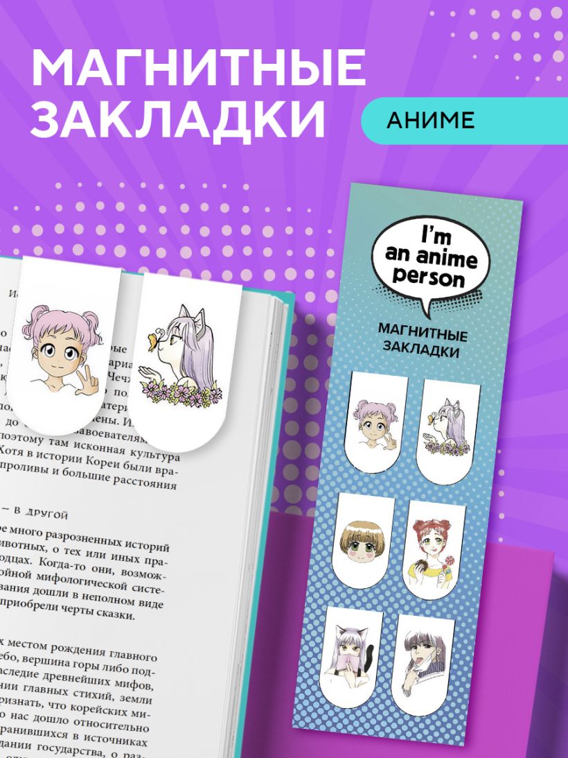 Магнитные закладки. I'm an anime person (6 закладок полукругл.)