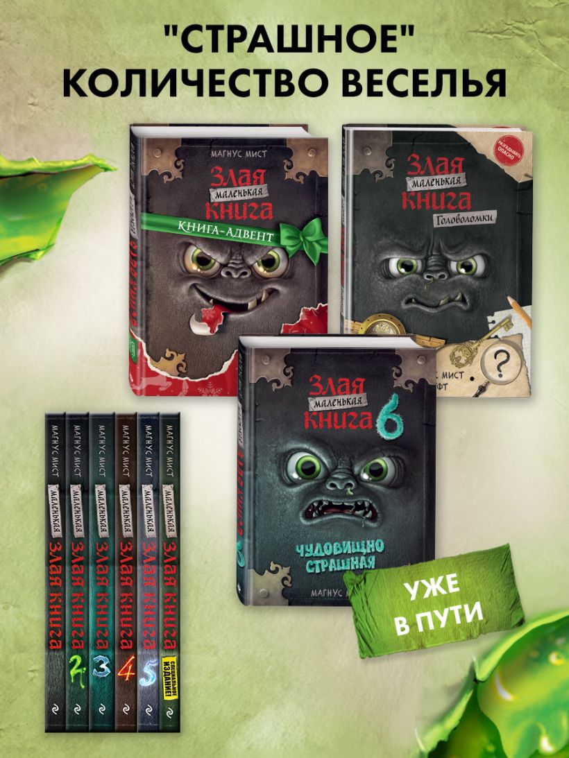 Первая книга международной серии-бестселлера — только в России продано более 600 000 экземпляров! Уникальный формат, сочетающий художественный текст + квест + разнообразные задания для читателей = книга-квест. Это издание создано для тех, кто считает, что читать — это скучно. Оно не оставит никаких сомнений, что с книгами можно классно проводить время: подтверждено тысячами положительных отзывов родителей! Секрет успеха серии в том, что книга ведёт живой, юмористический диалог с читателем, рассказывает ему страшные истории и приглашает в авантюрное приключение. Чтобы пройти всю книгу до конца (принимая решения на сюжетных развилках и переходя по разным страницам не по порядку), нужно разгадать немало загадок и головоломок, которые развивают внимание и мышление. В этот раз злюка испортила Рождество, и только самый смелый читатель сможет всё исправить. Фишка издания: запечатанные страницы, которые нужно разрезать только по две в день! Книга-игра, которую можно рассматривать как подарок на Новый год и Рождество, содержит множество атмосферных цветных иллюстраций и красивые шрифты. «Книга-адвент» — это новогодний подарок для мальчика и девочки 7—11 лет. Ещё выпущены специальные издания «Читай с друзьями» и «Головоломки», а также подсерия для подростков 11—13 лет «Злая книга».