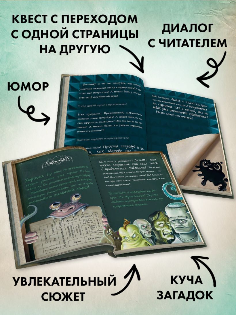 Международная серия-бестселлер — только в России продано более 600 000 экземпляров! Уникальный формат, сочетающий художественный текст + квест + разнообразные задания для читателей = книга-квест. Это издание создано для тех, кто считает, что читать — это скучно. Оно не оставит никаких сомнений, что с книгами можно классно проводить время: подтверждено тысячами положительных отзывов родителей! Секрет успеха серии в том, что книга ведёт живой, юмористический диалог с читателем, рассказывает ему страшные истории и приглашает в авантюрное приключение. Чтобы пройти всю книгу до конца, нужно найти путь через 24 разнообразных лабиринта. Книга-игра содержит множество атмосферных цветных иллюстраций и понравится детям 7—11 лет.