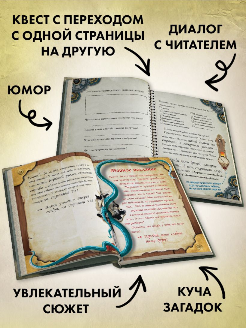 Международная серия-бестселлер — только в России продано более 600 000 экземпляров! Уникальный формат, сочетающий художественный текст + квест + разнообразные задания для читателей = книга-квест. Это издание создано для тех, кто считает, что читать — это скучно. Оно не оставит никаких сомнений, что с книгами можно классно проводить время: подтверждено тысячами положительных отзывов родителей! Секрет успеха серии в том, что книга ведёт живой, юмористический диалог с читателем, рассказывает ему страшные истории и приглашает в авантюрное приключение. Чтобы пройти всю книгу до конца, нужно найти путь через 24 разнообразных лабиринта. Книга-игра содержит множество атмосферных цветных иллюстраций и понравится детям 7—11 лет.