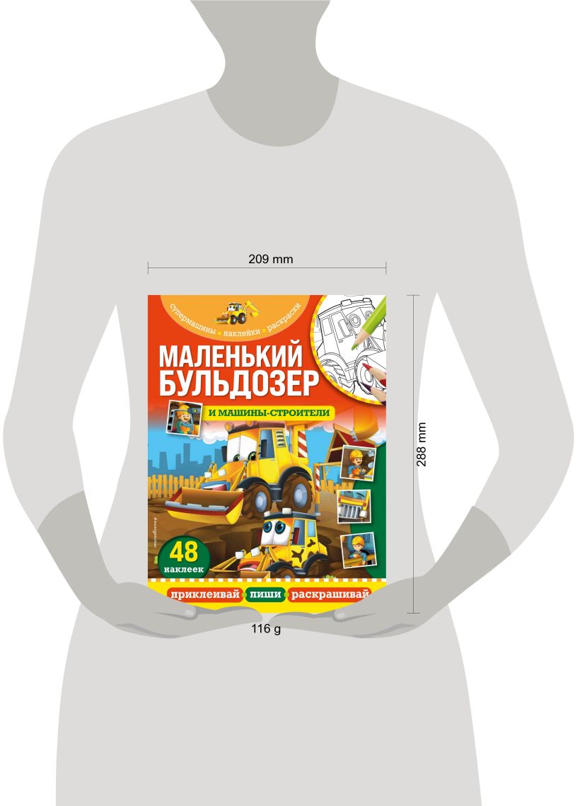 Как только придумаете историю, вас ждет главное развлечение — пазл из наклеек и раскраски. Подбирайте недостающие фрагменты изображений в наклейках, тренируйте моторику, наклеивая их на свои места, раскрашивайте рисунки самыми яркими цветами и веселитесь от души с машинами — героями стройки!