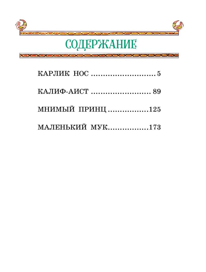 В книгу вошли четыре необычные и удивительные истории, полные волшебства, приключений и житейской мудрости: «Карлик Нос», «Калиф-аист», «Мнимый принц» и «Маленький Мук».