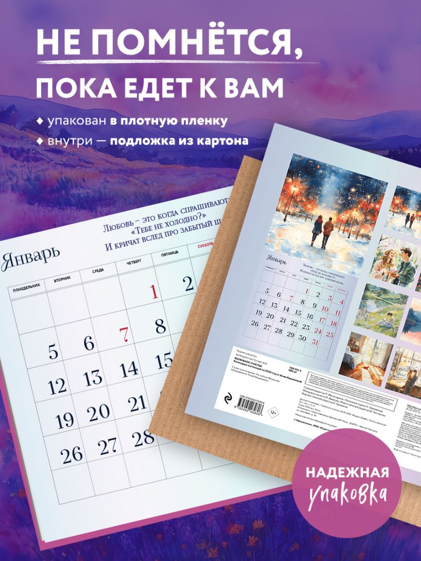 Календарь «Маленькое счастье» создан по мотивам одноименного бестселлера Анны Кирьяновой и других ее книг, которые покорили сердца тысяч читателей.