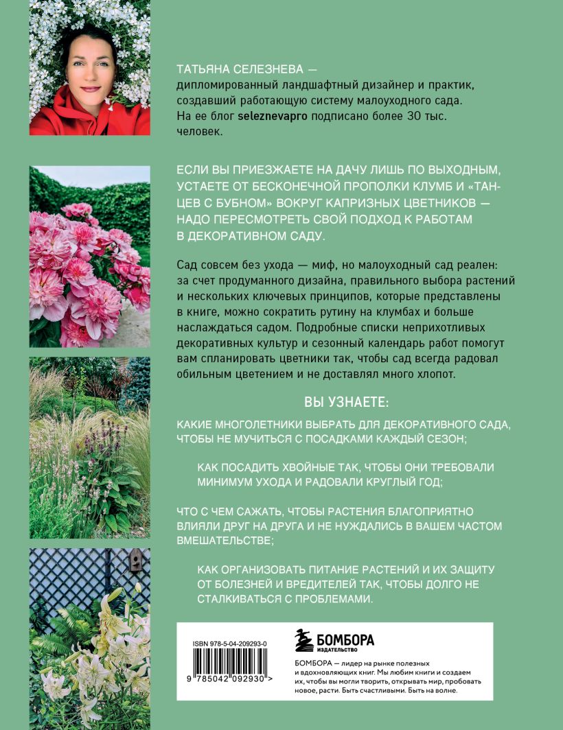 Если вы наведываетесь на дачу лишь по выходным и устали от бесконечной прополки и «танцев с бубном» вокруг капризных цветников, то эта книга для вас! Она станет вашим простым и понятным планом действий. Подробные списки неприхотливых декоративных культур и сезонный календарь работ помогут вам спланировать цветники так, чтобы сад всегда радовал обильным цветением и не доставлял много хлопот.